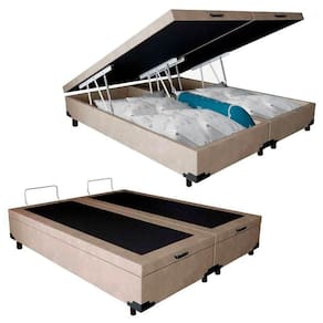 Cama Box Baú King Bipartido Suede Cama Bege 192x203x45cm