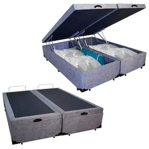 Cama Box Baú King Bipartido Suede Serene Cinza 198x203x44