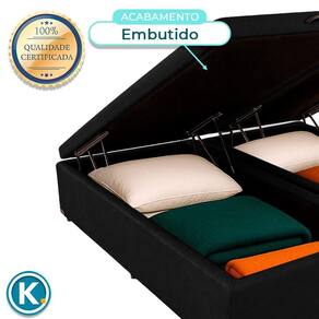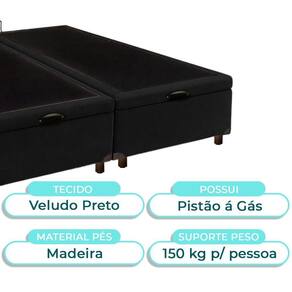 Cama Box Bau King Blindado Nature Preto 193x203 Base baú King com 37cm de altura e amplo espaço interno para organização Revestimento em Veludo , fácil de limpar e com visual moderno