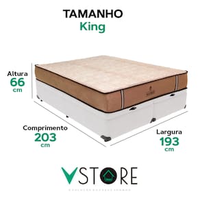 A tecnologia que a sua casa merece está na V-Store! O Conjunto Colchão Madrid + Base Box Baú Bravus da V-Store oferece o equilíbrio perfeito entre conforto, praticidade e elegância. O colchão, com molas ensacadas e sistema EPS, garante noites de sono tranquilas, com suporte ideal e proteção contra ácaros e alergias. Já a base box baú, feita com madeira reflorestada, conta com um design sofisticado, amplo espaço de armazenamento e funcionalidade adicional para guardar travesseiros, malas e cobertores. Com capacidade para até 150 kg por pessoa, esse conjunto é ideal para quem busca qualidade e praticidade.Característica Do Colchão: Modelo: MadridMarca: V-StoreTamanho: KingDimensões: 193x28x203 (Largura x Altura x Comprimento)Conforto: MédioSistema: Molas EnsacadasPillow: Não se aplicaPeso Máximo recomendado: 150 kg (Por pessoa)Proteções: Antiácaro, antialérgico, antifungo, antimofoGarantia: 12 Meses (Espuma) / 10 anos ( Conjunto de Molas Ensacadas)Característica Da Base: Marca: V-StoreModelo: BravusCor do Box: BrancoTamanho: KingDimensões: 193x44x203 (Largura x Altura x Comprimento)Estrutura: MadeiraPeso máximo recomendado: 150 kg (Por Pessoa)Altura do Box: 38 cmAltura dos Pés: 6 cmAltura total: 44 cmGarantia: 12 Meses (Estrutura) / 3 meses (Tecido)Selo Ecologicamente CorretoAtenção:- Antes de finalizar sua compra, recomendamos que verifique se as dimensões do produto são adequadas para serem transportadas pelos elevadores, portas, escadas e corredores de sua residência. Ressaltamos que não nos responsabilizamos pelo transporte do produto por meios específicos, como escadas, guinchos ou içamentos.- É possível que hajam leves variações de cor de acordo com o dispositivo que está sendo utilizado como smartphones, computadores, monitores e outros.