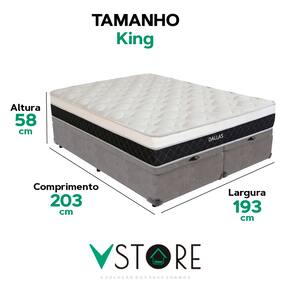 Cama Box Baú King e Colchão Dallas Molas V-Store 193x203x20 - Cinza