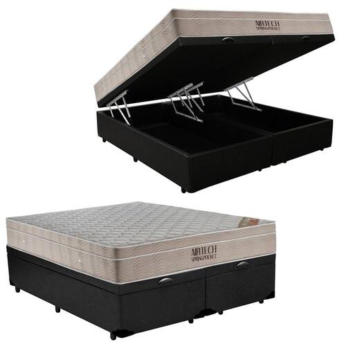 Cama Box Baú King Sintético Bipartido + Colchão Ortobom Airtech Molas Ensacadas 65x193x203 - Preto