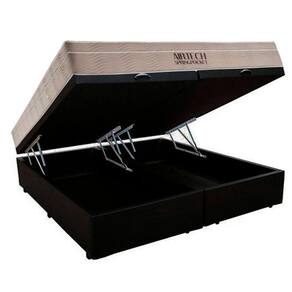 Cama Box Baú King Suede Bipartido + Colchão Ortobom Airtech Molas Ensacadas 65x193x203 Preto