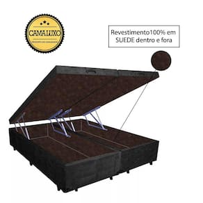 Cama Box Baú Luxo Blindado Suede Preto com Revestimento Interno em Suede Marrom é produzido com os melhores materiais, proporcionando uma alta resistência e durabilidade prolongada.