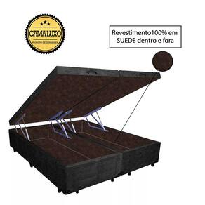 Cama Box Baú Luxo Blindado Suede Preto com Revestimento Interno em Suede Marrom é produzido com os melhores materiais, proporcionando uma alta resistência e durabilidade prolongada.