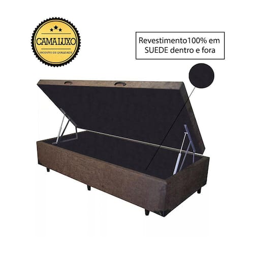 Cama Box Baú Luxo Blindado Suede Marrom com Revestimento Interno em Suede Preto é produzido com os melhores materiais, proporcionando uma alta resistência e durabilidade prolongada.