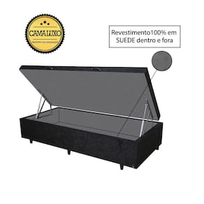 Cama Box Baú Luxo Blindado Suede Preto com Revestimento Interno em Suede Cinza é produzido com os melhores materiais, proporcionando uma alta resistência e durabilidade prolongada.
