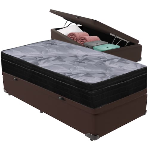 Cama Box Baú Marrom e Colchão Airtech Pampa Molas ensacadas Solteiro Ortobom