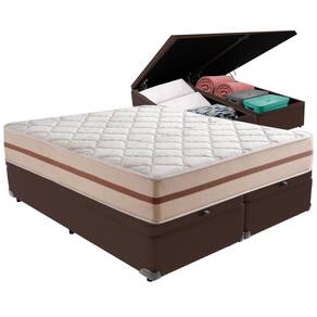 O conforto que sua casa precisa e a qualidade que você merece está na Kazamix!O Colchão Classic da Anjos é a escolha perfeita para quem busca o equilíbrio entre conforto, durabilidade e custo-benefício. Com molas ensacadas, proporciona suporte individualizado, garantindo noites de sono mais tranquilas e sem transferência de movimento. O conforto intermediário atende a diferentes preferências, enquanto o design clean, com superfície plana, traz um toque de modernidade ao ambiente.Além disso, conta com tratamento antiácaro, antialérgico e antifungo, promovendo um sono mais saudável e livre de alergias. Um investimento ideal para transformar suas noites e garantir bem-estar diariamente. Aproveite o conforto e a qualidade que você merece!Modelo: Classic 22Marca: AnjosTamanho: QueenDimensões: 158x198X22 (Largura x Comprimento x Altura)Conforto: IntermediárioSistema: Molas ensacadas Pillow: Não se AplicaPeso Máximo recomendado: 120 kg (Por pessoa)Proteções: Antiácaro, antialérgico, antifungo, antimofoGarantia: 1 ano pelo FabricanteO conforto que sua casa precisa e a qualidade que você merece está na KazamixAproveite cada metro quadrado do seu dormitório com a Cama Box Baú!Projetada com madeira de reflorestamento reforçada, a Cama Box Baú é a escolha ideal para quem busca otimização de espaço e praticidade na organização do dia a dia.Com um baú generoso, ela oferece a solução perfeita para armazenar travesseiros extras, cobertores, malas e muito mais. Além disso, sua estrutura robusta suporta até 150 kg por pessoa, garantindo a sustentação ideal para o seu colchão e prolongando sua vida útil.O pistão a gás robusto proporciona uma abertura suave e segura do baú, oferecendo praticidade e resistência no uso diário. Para completar, o acabamento de alta qualidade combina perfeitamente com qualquer estilo de decoração, agregando elegância e versatilidade ao seu ambiente.Não perca tempo! Adquira agora mesmo sua Cama Box Baú e diga adeus à falta de espaço e desorganização.Marca: KazaMixModelo: BaúCor do Box: MarromTamanho: QueenDimensões: 158X198X37 (Largura x Comprimento x Altura) Estrutura: MadeiraPeso máximo recomendado: 150 kg (Por Pessoa)Altura do Box: 32 cm Altura dos Pés: 5 cm Altura total: 37 cm Garantia: 03 mesesSelo Ecologicamente CorretoAtenção: Antes de finalizar sua compra, certifique-se de que as dimensões do produto sejam adequadas para serem transportadas pelos elevadores, portas, escadas e corredores de sua residência. Ressaltamos que não nos responsabilizamos pelo transporte do produto por meios específicos, como escadas, guinchos ou içamentos.