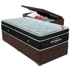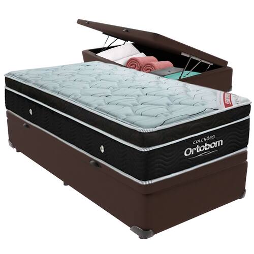 Cama Box Baú Marrom e Colchão Elegant Molas Ensacadas Solteiro Ortobom