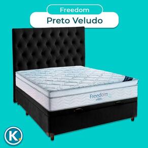 Conjunto Casal Colchão Freedom + Cama Box Baú Preto + Cabeceira