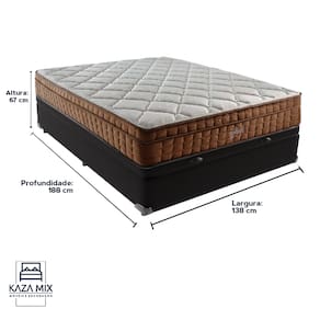 O conforto que sua casa precisa e a qualidade que você merece está na Kazamix!Apresentamos o Colchão Star Pillow In Ortopédico da Anjos, a escolha ideal para quem busca conforto, suporte e um toque extra de luxo. Seu design ortopédico oferece suporte progressivo para a coluna, prevenindo dores nas costas e promovendo o bem-estar durante o sono. O Euro Pillow, uma camada adicional de espuma macia na parte superior, proporciona uma sensação de aconchego e alívio dos pontos de pressão, melhorando ainda mais o conforto.Com revestimento em malha, o colchão garante respirabilidade superior, enquanto o acabamento em veludo nas laterais traz elegância ao produto. O conforto extra firme é perfeito para pessoas até 140kg, oferecendo uma superfície de sono estável e segura. Além disso, o colchão é tratado contra ácaros e fungos, promovendo um ambiente de sono saudável.Invista em noites de sono revitalizantes e desfrute do equilíbrio perfeito entre conforto e qualidade com o Colchão Star Pillow In!Modelo: Anjos Star Pillow InMarca: AnjosTamanho: CasalDimensões: 138x188X30 (Largura x Comprimento x Altura)Conforto: Extra FirmeSistema: Espuma D28Pillow: Pillow TopPeso Máximo recomendado: 140 kg (Por pessoa)Proteções: Antiácaro, antialérgico, antifungo, antimofoGarantia: 1 ano pelo FabricanteO conforto que sua casa precisa e a qualidade que você merece está na KazamixAproveite cada metro quadrado do seu dormitório com a Cama Box Baú!Projetada com madeira de reflorestamento reforçada, a Cama Box Baú é a escolha ideal para quem busca otimização de espaço e praticidade na organização do dia a dia.Com um baú generoso, ela oferece a solução perfeita para armazenar travesseiros extras, cobertores, malas e muito mais. Além disso, sua estrutura robusta suporta até 150 kg por pessoa, garantindo a sustentação ideal para o seu colchão e prolongando sua vida útil.O pistão a gás robusto proporciona uma abertura suave e segura do baú, oferecendo praticidade e resistência no uso diário. Para completar, o acabamento de alta qualidade combina perfeitamente com qualquer estilo de decoração, agregando elegância e versatilidade ao seu ambiente.Não perca tempo! Adquira agora mesmo sua Cama Box Baú e diga adeus à falta de espaço e desorganização.Marca: KazaMixModelo: BaúCor do Box: PretoTamanho: CasalDimensões: 138X188X37 (Largura x Comprimento x Altura) Estrutura: MadeiraPeso máximo recomendado: 150 kg (Por Pessoa)Altura do Box: 32 cm Altura dos Pés: 5 cm Altura total: 37 cm Garantia: 03 mesesSelo Ecologicamente CorretoAtenção: Antes de finalizar sua compra, certifique-se de que as dimensões do produto sejam adequadas para serem transportadas pelos elevadores, portas, escadas e corredores de sua residência. Ressaltamos que não nos responsabilizamos pelo transporte do produto por meios específicos, como escadas, guinchos ou içamentos.