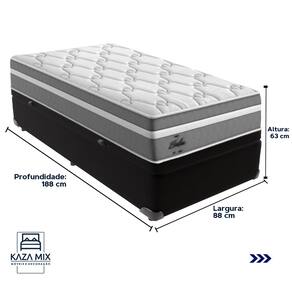O conforto que sua casa precisa e a qualidade que você merece está na Kazamix!Apresentamos o Colchão Probel Berlim, a escolha ideal para quem busca conforto e qualidade. Com Molas Ensacadas (Molas Ensacadas) e camada Euro Pillow, ele proporciona suporte individualizado e maciez extra para um sono tranquilo. A espuma D28 oferece durabilidade e conforto, enquanto o tecido em malha e jacquard garante um toque sofisticado e respirabilidade.Além disso, conta com proteções antiácaro e antialérgico, criando um ambiente saudável para o seu descanso.Invista no seu conforto com o Colchão Probel Berlim!Modelo: BerlimMarca: ProbelTamanho: SolteiroDimensões: 88x188X32 (Largura x Comprimento x Altura)Conforto: IntermediárioSistema: Molas EnsacadasPillow: Euro PillowPeso Máximo recomendado: 110 kg (Por pessoa)Proteções: Antiácaro, antialérgico, antifungo, antimofoGarantia: 1 ano pelo FabricanteO conforto que sua casa precisa e a qualidade que você merece está na KazamixAproveite cada metro quadrado do seu dormitório com a Cama Box Baú!Projetada com madeira de reflorestamento reforçada, a Cama Box Baú é a escolha ideal para quem busca otimização de espaço e praticidade na organização do dia a dia.Com um baú generoso, ela oferece a solução perfeita para armazenar travesseiros extras, cobertores, malas e muito mais. Além disso, sua estrutura robusta suporta até 150 kg por pessoa, garantindo a sustentação ideal para o seu colchão e prolongando sua vida útil.O pistão a gás robusto proporciona uma abertura suave e segura do baú, oferecendo praticidade e resistência no uso diário. Para completar, o acabamento de alta qualidade combina perfeitamente com qualquer estilo de decoração, agregando elegância e versatilidade ao seu ambiente.Não perca tempo! Adquira agora mesmo sua Cama Box Baú e diga adeus à falta de espaço e desorganização.Marca: KazaMixModelo: BaúCor do Box: PretoTamanho: SolteiroDimensões: 88X188X37 (Largura x Comprimento x Altura) Estrutura: MadeiraPeso máximo recomendado: 150 kg (Por Pessoa)Altura do Box: 32 cm Altura dos Pés: 5 cm Altura total: 37 cm Garantia: 03 mesesSelo Ecologicamente CorretoAtenção: Antes de finalizar sua compra, certifique-se de que as dimensões do produto sejam adequadas para serem transportadas pelos elevadores, portas, escadas e corredores de sua residência. Ressaltamos que não nos responsabilizamos pelo transporte do produto por meios específicos, como escadas, guinchos ou içamentos.