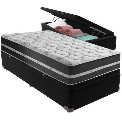 O conforto que sua casa precisa e a qualidade que você merece está na Kazamix!Descubra o Colchão Classic da Anjos, a combinação perfeita de funcionalidade, conforto e durabilidade. Com design clean e moderno, sua superfície plana proporciona um toque de elegância ao ambiente, enquanto as molas ensacadas garantem um suporte individualizado, ideal para um descanso tranquilo e sem transferência de movimento.Este modelo oferece conforto intermediário, adaptando-se às mais variadas preferências. Com tratamento antiácaro e antialérgico, o Classic cria um ambiente mais saudável e seguro para o seu sono. Um colchão de alta densidade que une qualidade e custo-benefício, perfeito para quem valoriza bem-estar e sofisticação. Transforme suas noites com o conforto que você merece!Modelo: Classic 26 PretoMarca: AnjosTamanho: SolteiroDimensões: 88x188X26 (Largura x Comprimento x Altura)Conforto: IntermediárioSistema: Molas ensacadas Pillow: Não se AplicaPeso Máximo recomendado: 130 kg (Por pessoa)Proteções: Antiácaro, antialérgico, antifungo, antimofoGarantia: 1 ano pelo FabricanteO conforto que sua casa precisa e a qualidade que você merece está na KazamixAproveite cada metro quadrado do seu dormitório com a Cama Box Baú!Projetada com madeira de reflorestamento reforçada, a Cama Box Baú é a escolha ideal para quem busca otimização de espaço e praticidade na organização do dia a dia.Com um baú generoso, ela oferece a solução perfeita para armazenar travesseiros extras, cobertores, malas e muito mais. Além disso, sua estrutura robusta suporta até 150 kg por pessoa, garantindo a sustentação ideal para o seu colchão e prolongando sua vida útil.O pistão a gás robusto proporciona uma abertura suave e segura do baú, oferecendo praticidade e resistência no uso diário. Para completar, o acabamento de alta qualidade combina perfeitamente com qualquer estilo de decoração, agregando elegância e versatilidade ao seu ambiente.Não perca tempo! Adquira agora mesmo sua Cama Box Baú e diga adeus à falta de espaço e desorganização.Marca: KazaMixModelo: BaúCor do Box: PretoTamanho: SolteiroDimensões: 88X188X37 (Largura x Comprimento x Altura) Estrutura: MadeiraPeso máximo recomendado: 150 kg (Por Pessoa)Altura do Box: 32 cm Altura dos Pés: 5 cm Altura total: 37 cm Garantia: 03 mesesSelo Ecologicamente CorretoAtenção: Antes de finalizar sua compra, certifique-se de que as dimensões do produto sejam adequadas para serem transportadas pelos elevadores, portas, escadas e corredores de sua residência. Ressaltamos que não nos responsabilizamos pelo transporte do produto por meios específicos, como escadas, guinchos ou içamentos.