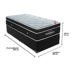 O conforto que sua casa precisa e a qualidade que você merece está na Kazamix!Desfrute do máximo conforto com o Colchão Elegant Ortobom! Sua estrutura de molas ensacadas, combinada com espuma D26 de alta densidade, proporciona o suporte perfeito para uma noite de sono revigorante. O Pillow Euro oferece um toque adicional de suavidade, garantindo um descanso ainda mais relaxante.Com o sistema No Turn, a manutenção se torna super simples, pois não é necessário virar o colchão. A fibra de bambu, que possui um toque macio e aconchegante, também contribui para um ambiente mais sustentável e confortável.Experimente o Colchão Elegant Ortobom e descubra o conforto, a qualidade e a inovação que você merece. Invista em noites de sono incríveis!Modelo: ElegantMarca: OrtobomTamanho: SolteiroDimensões: 88x188X28 (Largura x Comprimento x Altura)Conforto: FirmeSistema: Molas EnsacadasPillow: Euro PillowPeso Máximo recomendado: 150 kg (Por pessoa)Proteções: Antiácaro, antialérgico, antifungo, antimofoGarantia: 1 ano pelo FabricanteO conforto que sua casa precisa e a qualidade que você merece está na KazamixAproveite cada metro quadrado do seu dormitório com a Cama Box Baú!Projetada com madeira de reflorestamento reforçada, a Cama Box Baú é a escolha ideal para quem busca otimização de espaço e praticidade na organização do dia a dia.Com um baú generoso, ela oferece a solução perfeita para armazenar travesseiros extras, cobertores, malas e muito mais. Além disso, sua estrutura robusta suporta até 150 kg por pessoa, garantindo a sustentação ideal para o seu colchão e prolongando sua vida útil.O pistão a gás robusto proporciona uma abertura suave e segura do baú, oferecendo praticidade e resistência no uso diário. Para completar, o acabamento de alta qualidade combina perfeitamente com qualquer estilo de decoração, agregando elegância e versatilidade ao seu ambiente.Não perca tempo! Adquira agora mesmo sua Cama Box Baú e diga adeus à falta de espaço e desorganização.Marca: KazaMixModelo: BaúCor do Box: PretoTamanho: SolteiroDimensões: 88X188X37 (Largura x Comprimento x Altura) Estrutura: MadeiraPeso máximo recomendado: 150 kg (Por Pessoa)Altura do Box: 32 cm Altura dos Pés: 5 cm Altura total: 37 cm Garantia: 03 mesesSelo Ecologicamente CorretoAtenção: Antes de finalizar sua compra, certifique-se de que as dimensões do produto sejam adequadas para serem transportadas pelos elevadores, portas, escadas e corredores de sua residência. Ressaltamos que não nos responsabilizamos pelo transporte do produto por meios específicos, como escadas, guinchos ou içamentos.