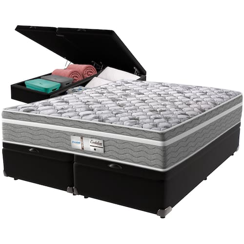 O conforto que sua casa precisa e a qualidade que você merece está na Kazamix!O Colchão Evolution é a escolha ideal para quem busca conforto, suporte e qualidade em cada noite de sono. Com Molas Ensacadas que oferecem um suporte individualizado, e um Pillow Euro que proporciona uma camada extra de suavidade, esse colchão transforma seu descanso em uma experiência de luxo.Com espuma D28 de alta densidade, o Evolution garante firmeza e conforto duradouros. Seu acabamento em poliéster diamante e bordado em matelassê trazem um toque de elegância e sofisticação ao seu ambiente.Além disso, o colchão é tratado com propriedades antiácaro e antialérgico, garantindo um sono mais saudável e seguro.Invista no seu bem-estar com o colchão Evolution, e experimente a combinação perfeita de conforto e durabilidade!Modelo: EvolutionMarca: ProbelTamanho: QueenDimensões: 158x198X32 (Largura x Comprimento x Altura)Conforto: IntermediárioSistema: Molas EnsacadasPillow: Euro PillowPeso Máximo recomendado: 110 kg (Por pessoa)Proteções: Antiácaro, antialérgico, antifungo, antimofoGarantia: 1 ano pelo FabricanteO conforto que sua casa precisa e a qualidade que você merece está na KazamixAproveite cada metro quadrado do seu dormitório com a Cama Box Baú!Projetada com madeira de reflorestamento reforçada, a Cama Box Baú é a escolha ideal para quem busca otimização de espaço e praticidade na organização do dia a dia.Com um baú generoso, ela oferece a solução perfeita para armazenar travesseiros extras, cobertores, malas e muito mais. Além disso, sua estrutura robusta suporta até 150 kg por pessoa, garantindo a sustentação ideal para o seu colchão e prolongando sua vida útil.O pistão a gás robusto proporciona uma abertura suave e segura do baú, oferecendo praticidade e resistência no uso diário. Para completar, o acabamento de alta qualidade combina perfeitamente com qualquer estilo de decoração, agregando elegância e versatilidade ao seu ambiente.Não perca tempo! Adquira agora mesmo sua Cama Box Baú e diga adeus à falta de espaço e desorganização.Marca: KazaMixModelo: BaúCor do Box: PretoTamanho: QueenDimensões: 158X198X37 (Largura x Comprimento x Altura) Estrutura: MadeiraPeso máximo recomendado: 150 kg (Por Pessoa)Altura do Box: 32 cm Altura dos Pés: 5 cm Altura total: 37 cm Garantia: 03 mesesSelo Ecologicamente CorretoAtenção: Antes de finalizar sua compra, certifique-se de que as dimensões do produto sejam adequadas para serem transportadas pelos elevadores, portas, escadas e corredores de sua residência. Ressaltamos que não nos responsabilizamos pelo transporte do produto por meios específicos, como escadas, guinchos ou içamentos.