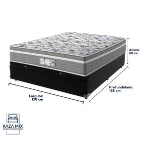 O conforto que sua casa precisa e a qualidade que você merece está na Kazamix!O Colchão Evolution é a escolha ideal para quem busca conforto, suporte e qualidade em cada noite de sono. Com Molas Ensacadas que oferecem um suporte individualizado, e um Pillow Euro que proporciona uma camada extra de suavidade, esse colchão transforma seu descanso em uma experiência de luxo.Com espuma D28 de alta densidade, o Evolution garante firmeza e conforto duradouros. Seu acabamento em poliéster diamante e bordado em matelassê trazem um toque de elegância e sofisticação ao seu ambiente.Além disso, o colchão é tratado com propriedades antiácaro e antialérgico, garantindo um sono mais saudável e seguro.Invista no seu bem-estar com o colchão Evolution, e experimente a combinação perfeita de conforto e durabilidade!Modelo: EvolutionMarca: ProbelTamanho: ViúvoDimensões: 128x188X18 (Largura x Comprimento x Altura)Conforto: IntermediárioSistema: Molas EnsacadasPillow: Euro PillowPeso Máximo recomendado: 110 kg (Por pessoa)Proteções: Antiácaro, antialérgico, antifungo, antimofoGarantia: 1 ano pelo FabricanteO conforto que sua casa precisa e a qualidade que você merece está na KazamixAproveite cada metro quadrado do seu dormitório com a Cama Box Baú!Projetada com madeira de reflorestamento reforçada, a Cama Box Baú é a escolha ideal para quem busca otimização de espaço e praticidade na organização do dia a dia.Com um baú generoso, ela oferece a solução perfeita para armazenar travesseiros extras, cobertores, malas e muito mais. Além disso, sua estrutura robusta suporta até 150 kg por pessoa, garantindo a sustentação ideal para o seu colchão e prolongando sua vida útil.O pistão a gás robusto proporciona uma abertura suave e segura do baú, oferecendo praticidade e resistência no uso diário. Para completar, o acabamento de alta qualidade combina perfeitamente com qualquer estilo de decoração, agregando elegância e versatilidade ao seu ambiente.Não perca tempo! Adquira agora mesmo sua Cama Box Baú e diga adeus à falta de espaço e desorganização.Marca: KazaMixModelo: BaúCor do Box: PretoTamanho: ViúvoDimensões: 128X188X37 (Largura x Comprimento x Altura) Estrutura: MadeiraPeso máximo recomendado: 150 kg (Por Pessoa)Altura do Box: 32 cm Altura dos Pés: 5 cm Altura total: 37 cm Garantia: 03 mesesSelo Ecologicamente CorretoAtenção: Antes de finalizar sua compra, certifique-se de que as dimensões do produto sejam adequadas para serem transportadas pelos elevadores, portas, escadas e corredores de sua residência. Ressaltamos que não nos responsabilizamos pelo transporte do produto por meios específicos, como escadas, guinchos ou içamentos.