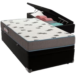 Com um baú generoso, ela oferece a solução perfeita para armazenar travesseiros extras, cobertores, malas e muito mais. Além disso, sua estrutura robusta suporta até 150 kg por pessoa, garantindo a sustentação ideal para o seu colchão e prolongando sua vida útil.