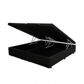 Cama Box Baú Queen 158 Tecido Sintético Preto Com Colchão Alegro Bello Box Espuma D28 Cinza 58x158x198