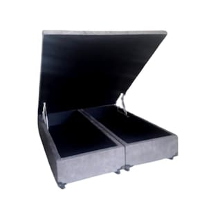 O Baú Master possui um sistema de amortecimento a gás que evita o esforço na hora de abri-lo, alça de apoio para o colchão não se deslocar quando você abrir o box e pés rosqueáveis que se ajustam aos desníveis do piso e tecido antiderrapante no tampo. Seu revestimento em tecido sintético ou suede tem uma linda estética e fácil de limpar. Por ser bipartido, permite a você criar uma perfeita organização, proporcionando amplo espaço de armazenamento para roupas de cama, travesseiros e outros itens, ajudando a manter seu ambiente organizado. Unindo qualidade, responsabilidade ambiental, bom gosto e o luxo do couro sintético/ Suede. Suporte de peso de 150 kg por pessoa.