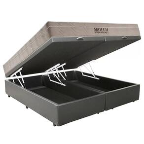 Cama Box Baú Queen Bipartido Cinza Colchão Molas Ensacadas Airtech Spring 158x198 - Ortobom