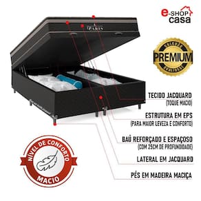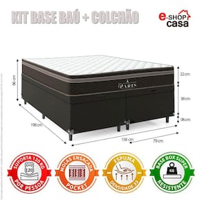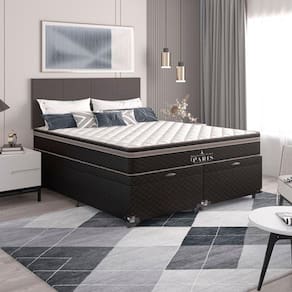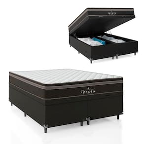 Cama Box Queen com Baú Bipartido + Colchão Paris Molas Ensacadas - e-Shop Casa