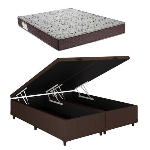 Cama Box Baú Queen Bipartido Marrom Colchão ISO 150 D45 - Ortobom