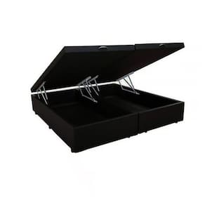 Cama Box Baú Queen Bipartido Corino Preto + Colchão Iso 100 D33 158x198x18 - Ortobom