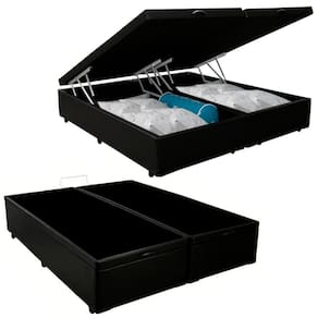 Estrutura blindada em madeira 100% de Reflorestamento e Revestimento em material sintético.Cama Box Baú Queen Bipartido Sintético Cama Preto 158x198x45cm