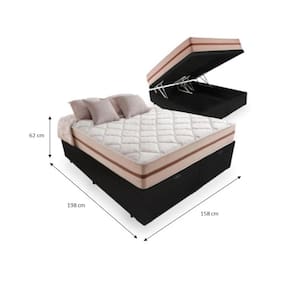 Cama Baú Box Queen Bipartido Tecido Sintético Preto com Colchão Pillow Angel - Bello Box - Molas Ensacadas 62x158x198O Conjunto Cama Box Baú Queen com Colchão de Molas Ensacadas Pillow Angel - Bello Box é uma combinação que oferece uma solução completa, praticidade e agilidade na aquisição de sua nova cama. O Colchão De Molas Ensacadas Pillow Angel - Bello Box é indicado para pessoas de até 120kg proporcionando conforto macio, confeccionado em molas ensacadas de alta qualidade e conta com uma camada de espuma D28. A Cama Box com alta durabilidade, resistente e excelente acabamento em tecido sintético com cantoneiras plásticas para proteção, o que lhe confere requinte e sofisticação em qualquer ambiente. Especificações Técnicas Colchão:- Marca: Bello Box.-Modelo: Molas Ensacada - Pillow Angel.- Proteções: Antiácaro - Antialérgico - Antifungo - Antimofo.- Acabamento: Bordado em Matelassê.- Matéria prima: Espuma/Molas/Tecido.- Tipo de conforto: Intermediário Firme.- Peso máximo recomendado: até 120Kg (por pessoa).- Dimensões do produto (altura x largura x comprimento).- Queen: 22x158x198cm.- Garantia: 3 meses. Especificações Técnicas Baú:- Material: Madeira tratada.- Proteções: Antiácaro - Antialérgico - Antifungo – Antimofo.- Peso máximo recomendado: até 100kg (por pessoa, fora o colchão).- Altura do baú: 35cm.- Profundidade do baú: 25cm.- Revestimento: Tecido Sintético.- Quantidade de Pés: 6 pés de plástico.- Altura dos pés: 6cm.-Cor: Preto.- Garantia: 3 meses.- Dimensões do produto (altura x largura x comprimento) Queen Bipartido: 40x158x198cm.*ATENÇÃO: Verifique se as dimensões dos produtos passam por elevadores, portas, escadas e corredores. Não nos responsabilizamos pelo transporte dos produtos por escadas, guinchos, içamentos ou quaisquer outros meios específicos de transporte. As imagens ambientadas são meramente ilustrativas e podem apresentar itens que não compõe o produto.- As cores do produto podem variar de acordo com o monitor, a iluminação do ambiente ou sua percepção visual.