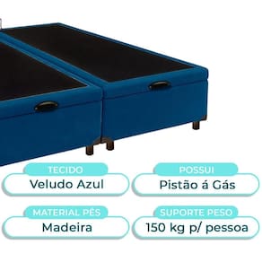 Modelo: Elite Marca: Nature Tamanho: Casal Tecido: Veludo Largura: 138cm Comprimento: 188cm Altura: 35cm Altura dos Pés: 7cm Material dos Pés: Madeira Suporte de Peso: 150Kg Peso: 35Kg Garantia: 3 Meses