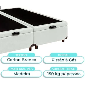 Cama Box Bau Queen Blindado Nature Branco 158x198