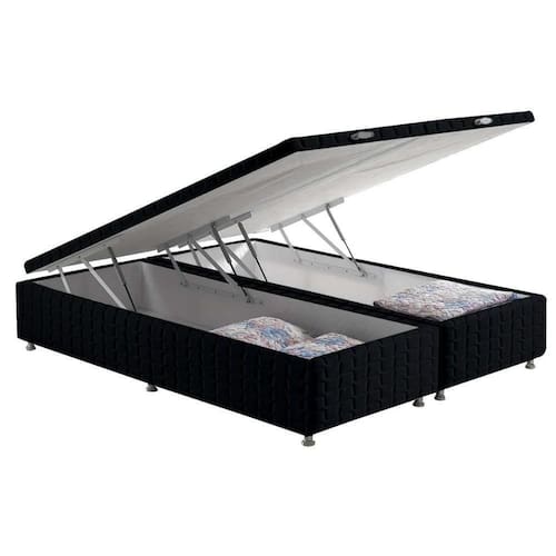 Cama Box Baú Queen Bordado Black (158x198x35 (2 uni 79X198)) - D Angelis Anjos
