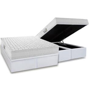 Cama Box Baú Queen: Colchão Anatômico Herval AG65 Frontier + Base CRC Linhão White (158x198) - Blush