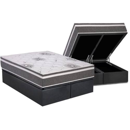 Conjunto Box Baú Queen: Colchão Espuma Polar D33 Pérola Premium + Base CRC Suede Gray (158x198)