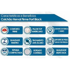Colchão Queen Espuma Compact AG 65 / Fort Black Pillow Top (158x198x22) - Herval