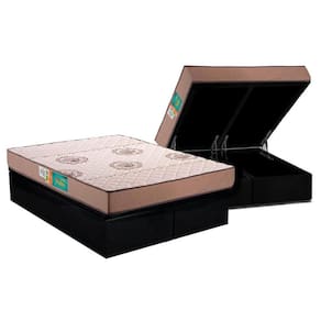 Cama Box Baú Queen: Colchão Espuma Polar D33 Pérola + Base CRC Suede Black(158x198) - Blush