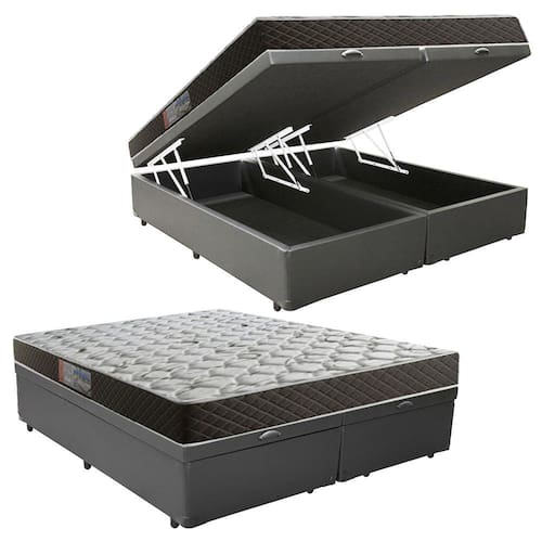 Cama Box Baú Queen Colchão Mola Ensacada Acolchões + Box Sintético 69x158x198 - Cinza