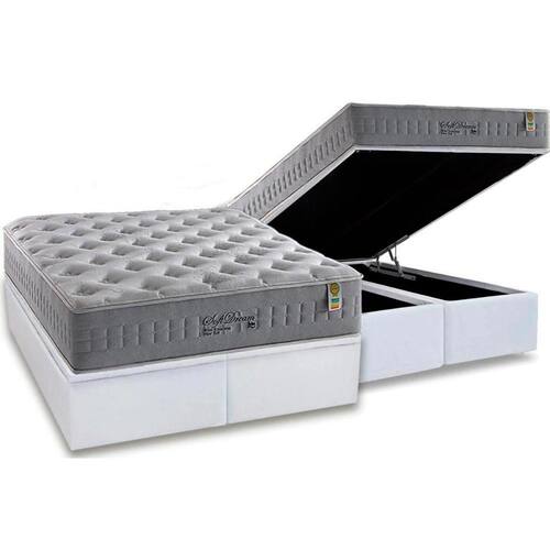 Conjunto Box Baú Queen: Colchão Molas Anjos MasterPocket Ensacadas Soft Dream + Base CRC Courano White(158x198)