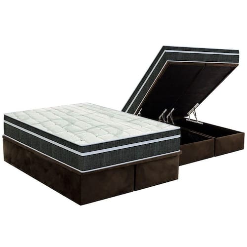 Conjunto Box Baú Queen: Colchão Molas Orthoflex Bonnel Venezia + Base CRC Suede Brown(158x198)