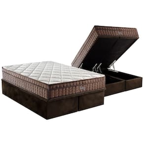 Cama Box Baú Queen: Colchão Ortopédico D Angelis Anjos D28 / Ag65 Anjos Star + Base Crc Suede Brown (158x198)