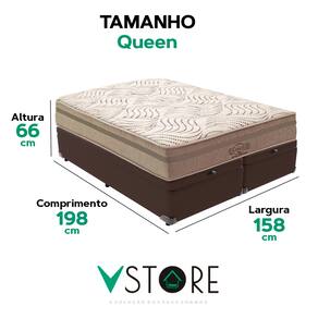 A tecnologia que a sua casa merece está na V-Store! O Conjunto Colchão Los Angeles + Base Box Baú Bravus da V-Store oferece conforto e funcionalidade. O colchão, com molas ensacadas e sistema EPS, garante suporte ideal, conforto térmico e proteção antiácaro. A base box, com amplo espaço de armazenamento, é feita de madeira reflorestada e revestida com tecido resistente, proporcionando praticidade e sofisticação ao seu quarto.Característica Do Colchão: Modelo: Los AngelesMarca: V-StoreTamanho: QueenDimensões: 158x28x198 (Largura x Altura x Comprimento)Conforto: MédioSistema: Molas EnsacadasPillow: Não se aplicaPeso Máximo recomendado: 150 kg (Por pessoa)Proteções: Antiácaro, antialérgico, antifungo, antimofoGarantia: 12 Meses (Espuma) / 10 anos ( Conjunto de Molas Ensacadas)Característica Da Base: Marca: V-StoreModelo: BravusTamanho: QueenDimensões: 158x44x198 (Largura x Altura x Comprimento)Estrutura: MadeiraPeso máximo recomendado: 150 kg (Por Pessoa)Altura do Box: 38 cmAltura dos Pés: 6 cmAltura total: 44 cmGarantia: 12 Meses (Estrutura) / 3 meses (Tecido)Selo Ecologicamente CorretoAtenção:- Antes de finalizar sua compra, recomendamos que verifique se as dimensões do produto são adequadas para serem transportadas pelos elevadores, portas, escadas e corredores de sua residência. Ressaltamos que não nos responsabilizamos pelo transporte do produto por meios específicos, como escadas, guinchos ou içamentos.- É possível que hajam leves variações de cor de acordo com o dispositivo que está sendo utilizado como smartphones, computadores, monitores e outros.