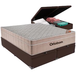 Bem-vindo(a) ao nosso catálogo! Apresentamos a você uma descrição completa sobre esse produto:\nO AirTech SpringMolas Ensacadas é um colchão de molas ensacadas que oferece uma excelente adaptação ao corpo, proporcionando um sono confortável e revitalizante. Com sua espuma D26 Pró, o colchão oferece suporte ideal e durabilidade a longo prazo. O Pillow Euro proporciona uma sensação de maciez e aconchego, enquanto a lateral em suede dá um toque de elegância ao produto.\nColchão: Modelo: Airtech Molas ensacadas; Marca: Ortobom; Tamanho: Queen; Dimensões: 158x198x25cm; (largura x comprimento x altura) Conforto: Molas Ensacadas, Espuma D26 Pró, Pillow Euro; Proteções: Antiácaro, antialérgico, antifungo, antimofo; Possui: Lateral em Suede; Peso máximo recomendado: até 120Kg (por pessoa); Garantia: 03 meses;\nSuporte e Altura: Este colchão suporta até 120kg, tornando-o ideal para pessoas de todos os tamanhos e formas. Com uma altura de 25cm, o AirTech SpringMolas Ensacadas oferece uma sensação de conforto e segurança, permitindo que você descanse profundamente e acorde revigorado pela manhã.\nQualidade Ortobom: O AirTech SpringMolas Ensacadas é produzido pela renomada marca Ortobom, conhecida por sua expertise em tecnologia do sono. Com anos de experiência no mercado, a Ortobom é reconhecida por oferecer produtos inovadores e de alta qualidade, que atendem às necessidades dos clientes mais exigentes.\nBase Box com Baú: Marca: KazaMix; Cor do Baú: Marrom; Revestimento da Cama: Material Sintético; Material dos pés: Madeira; Estrutura: Madeira; Abertura: Pistão a gás; Peso máximo recomendado: até 150kg de cada lado; Altura do Baú: 32cm; Altura dos pés: 5cm; Altura total: 37cm; Garantia: 03 meses; Selo Ecologicamente Correto.\nInvista no seu sono e experimente o conforto e a qualidade!\nAtenção: Antes de finalizar sua compra, certifique-se de que as dimensões do produto sejam adequadas para serem transportadas pelos elevadores, portas, escadas e corredores de sua residência. Ressaltamos que não nos responsabilizamos pelo transporte do produto por meios específicos, como escadas, guinchos ou içamentos. Ean: 7893053296468