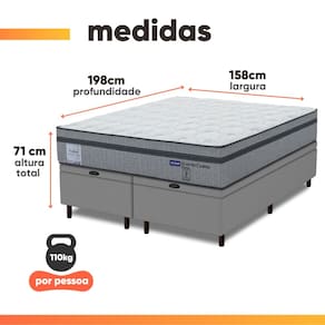 ITENS INCLUSOS: 1 colchão queen (158 cm), 2 box baú (0,79 cm)