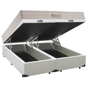 Cama Box Baú Queen Sintético Bipartido + Colchão Airtech Molas Ensacadas 65x158x198 Cor:branco