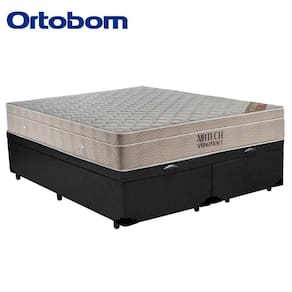 Cama Box Baú Queen Sintético Bipartido + Colchão Ortobom Airtech Molas Ensacadas 65x158x198 Cor:preto