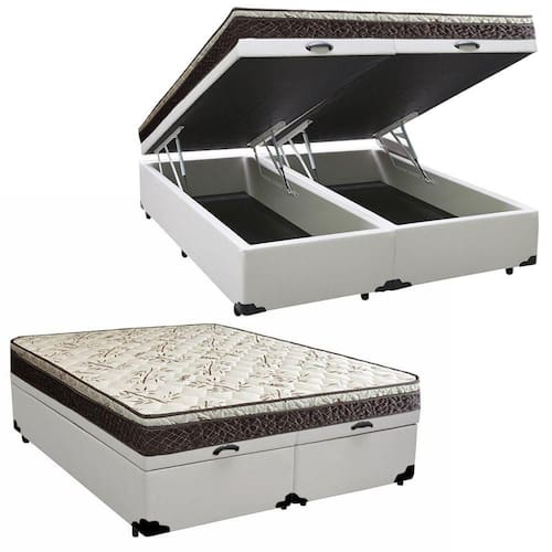 Cama Baú Queen Bipartido + Colchão Elegance Ortopédico Espuma D33 Extra Firme 63x158x198 Branco/ Marrom