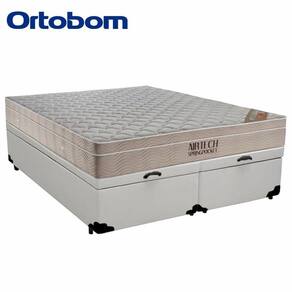 Cama Box Baú Queen Sintético Bipartido + Colchão Ortobom Airtech Molas Ensacadas 65x158x198 Branco