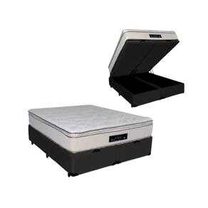 Diferenciais do Produto: Molas Ensacadas Individuais: proporcionam sustentação personalizada e independência total de movimentos — ideal para casais. Pillow Top Extra Macio: camada adicional de conforto que proporciona sensação de leveza e acolhimento. Revestimento em Sintético Premium: tecido sofisticado e agradável ao toque, que harmoniza facilmente com qualquer decoração. Base Baú Reforçada: estrutura de madeira de reflorestamento tratada, com pistões a gás resistentes e amplo espaço interno para guardar roupas de cama, cobertores e travesseiros. Altura imponente: o conjunto atinge 74 cm de altura total, transmitindo elegância e presença ao ambiente.