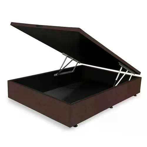 O baú Master possui um sistema de amortecimento a gás que evita o esforço na hora de abri-lo, alça de apoio para o colchão não se deslocar quando você abrir o box e pés rosqueáveis que se ajustam aos desníveis do piso e tecido antiderrapante no tampo. Seu revestimento em tecido sintético ou suede tem uma linda estética e fácil de limpar. Além de proporcionar amplo espaço de armazenamento para roupas de cama, travesseiros e outros itens, ajudando a manter seu ambiente organizado. Unindo qualidade, responsabilidade ambiental, bom gosto e o luxo do couro sintético ou do suede. Suporte de peso de 150 kg por pessoa.